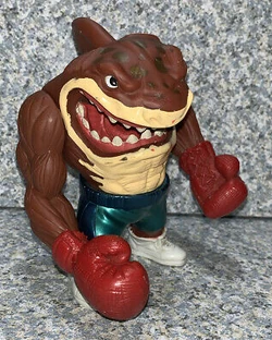 Slammu, originally called 'Boomer' in the 1994 Toyfair Vin Diesel video, stayed relatively the same, having the same single fist slamming action. He kept this action through series 1 and 2 of the toyline. For series 2, the figure was repainted to be 'Metallic', and given golden pants. Series 3 introduce the world to 'Slugger' Slammu, his boxing persona from a single episode where he boxed Killamari during Roxx's concert. The figure's only accessory was a mouth guard. Series 4 introduced 'Super Slammu', his super hero persona, able to fire his shield from his fist.
